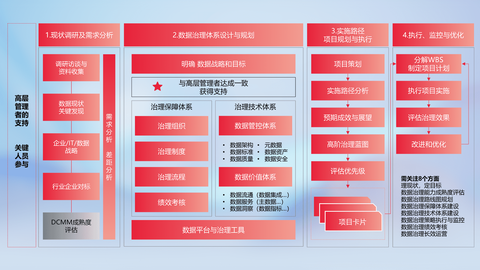 制定并执行统一的数据标准,,,,规范数据定义和格式,,,,消除冗余和不一致性,,,实现跨部门和跨系统的数据一致性,,,,为企业提供标准化的数据基础。。。